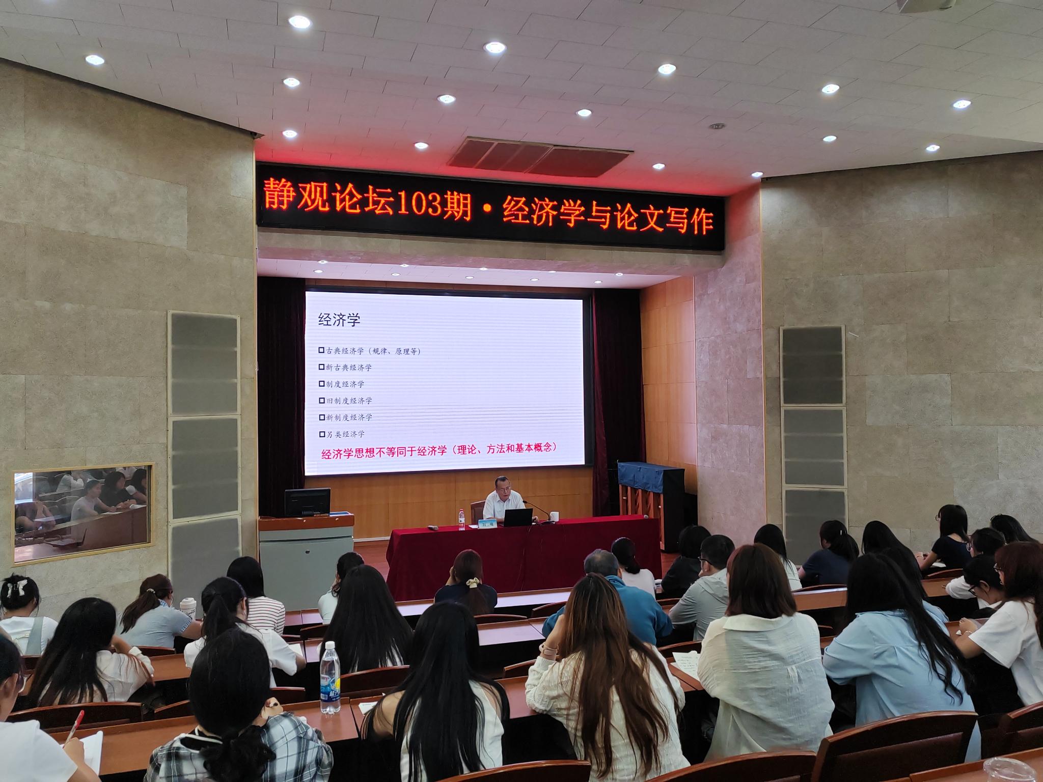 9月6日下午,M88mansion体育在经管楼报告厅成功举办了第103期“静观论坛”,本次论坛也是研究生入学教育的重要组成部分。论坛特邀公司高层次引进人才刘璨教授为2025级研究生新生带来了题为《经济学与论文写作》的主题报告。本次论坛由M88mansion体育科研与研究生工作副经理王琛主持。