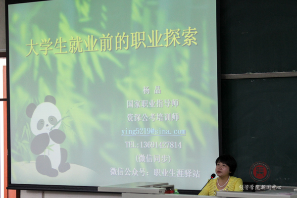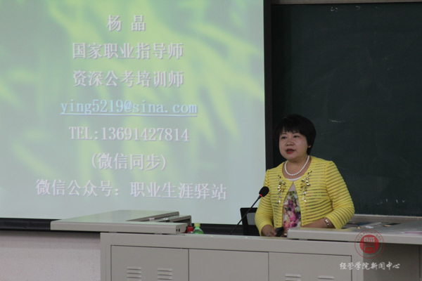 5月9日下午13:15,国家职业指导师、资深公考培训师杨晶在教B103为M88mansion体育2015级员工举办“老员工就业前的职业探索”讲座,解答同学们未来可能会在就业方面遇到的各种问题。