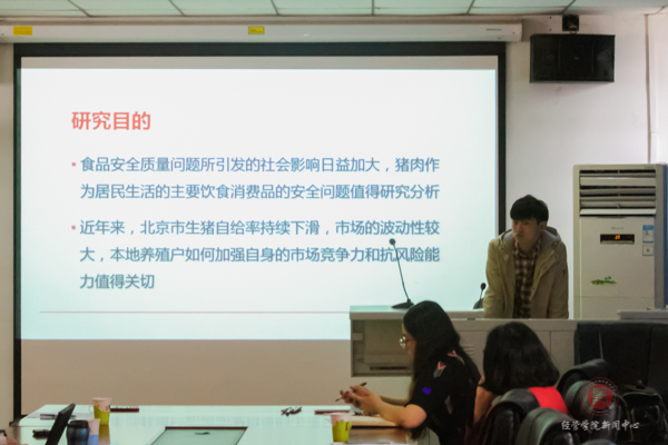 紧接着,上场的是宋展和王小东同学,他们都围绕着猪肉安全的问题进行了讲解,虽然主题相似,但风格各不相同,宋展同学干净利落,一记快攻让对手反应不过来,而王小东同学,沉着冷静,款款道来,丝毫也不逊色。从每位同学的表现可以看出他们都进行了充分的准备,对于四强的名额势在必得。