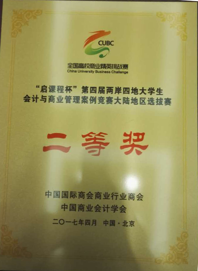 2014级会计学专业的10名同学在经过相当一段长时间的准备和努力之后,在比赛中取得了二等奖的好成绩,希望在以后的学习生活中,同学们也能不仅仅局限于书本上的知识,多参加一些课外活动,在实践中成长,开拓视野,为公司的风采增添一份自己的光芒!