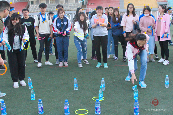 两项活动在热闹的氛围中结束了,随后同学们又来到了操场进行游戏。操场游戏区分别进行了长棍夹球、套啥给啥、飞镖投掷和趾压板挑战四项活动。同学们发挥了团队的力量,互帮互助,互相鼓励依次完成了每项游戏。在紧张而又刺激的比赛中,同学们发自内心的愉悦和心理放松将活动推向了高潮。