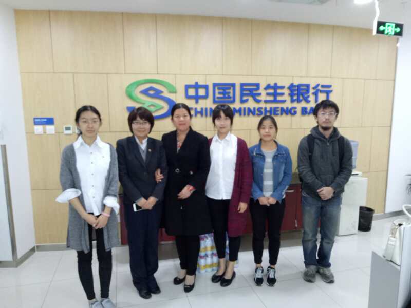 13投资学专业迟敬东、16农业经济管理硕士研究生夏岚一同前往,对小微企业信贷业务进行调研、座谈。民生银行小微金融业务部张扬总监详细介绍了小微贷业务的情况及未来发展趋势。赵经理和韩明晰行长就后期的实习基地建设、实践教学协同育人等进行沟通。
