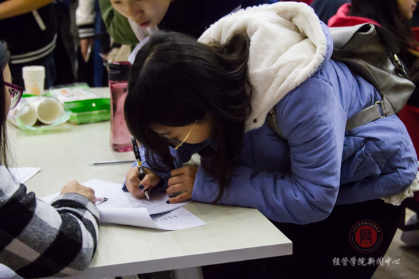 15级辅导员古丽老师向同学们耐心的讲解献血注意事项,并安抚同学们的紧张情绪。副经理赵金芳老师等也给同学们带来鼓励和安慰。