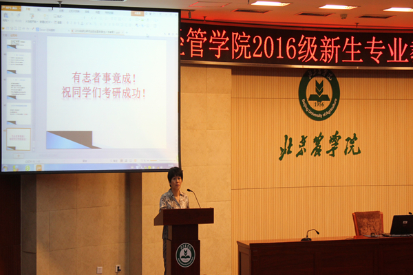 会议伊始,胡宝贵老师从招生情况,公司发展历史和现状三个方面进行了详细的介绍,其次还对新生提出了四点期望:主动适应、活在当下、规划未来、快乐和谐。之后,赵连静老师针对人才培养与教学管理方面进行了多方面的讲解,分别从培养进程,教学体系,教学管理服务三个方面展开,并向新生们提出了几点希望。刘芳老师向新生们介绍了公司的考研考点要求,还向新生们介绍了诺森比亚大学和公司的合作项目。