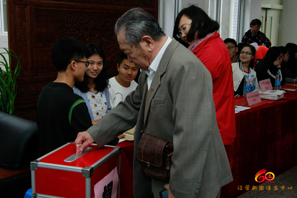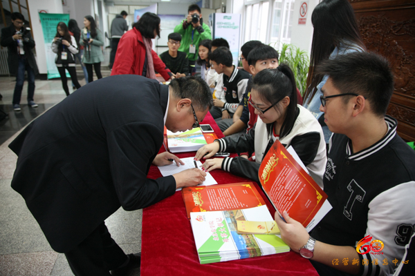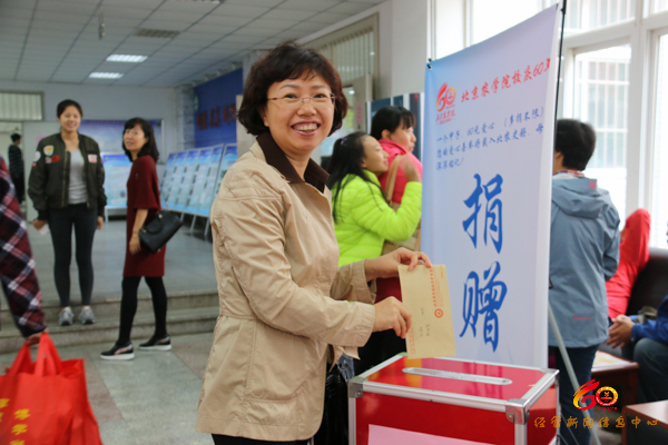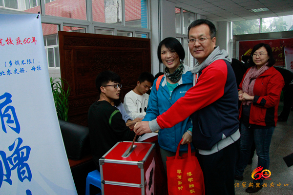 志愿者们穿着统一,引导签到。有的老员工为回报母校教育之恩进行捐赠,为母校的建设献出自己的一份力量。