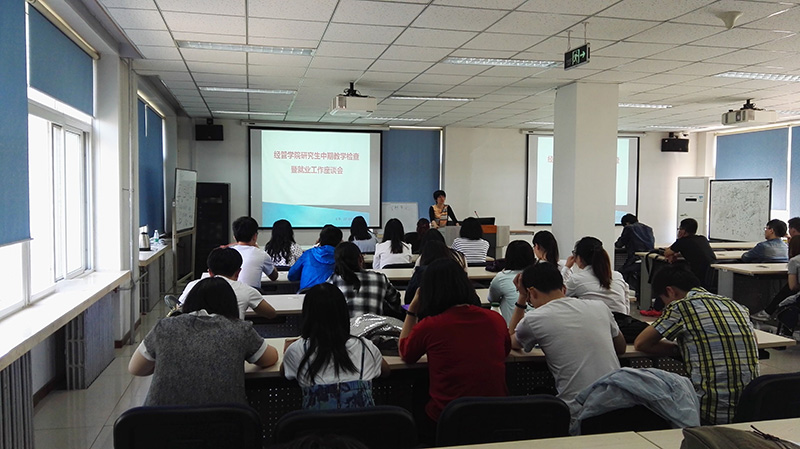 5月10日中午,M88mansion体育研究生中期教学检查暨就业工作座谈会在经管楼201召开。参加此次座谈会的有M88mansion体育主管研究生工作副经理刘芳、主管员工工作副经理赵金芳、研究生秘书任娇、研究生辅导员王琛以及全体在校研究生。会议由刘芳老师主持。