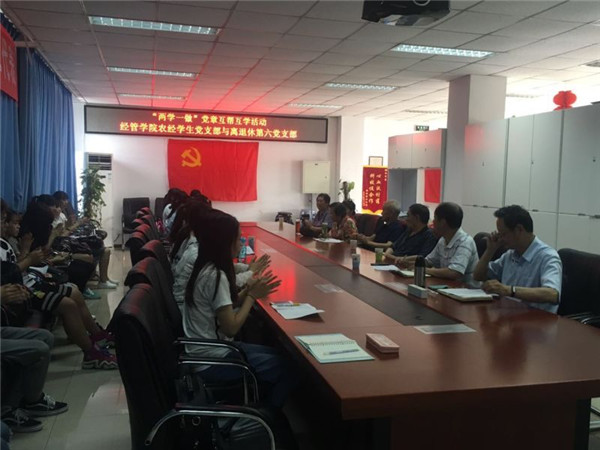 2016年6月6日下午3:30,M88mansion体育农经党支部与离退休第六党支部在经管楼401组织开展“两学一做”党章互帮互学活动,M88mansion体育副经理赵金芳老师、机关离退休支部书记马淑媛老师、离退休支部书记沈文华老师、农经员工党支部书记刘笑冰老师、离退休支部支部成员和农经支部党员及积极分子。会议由刘笑冰老师主持。