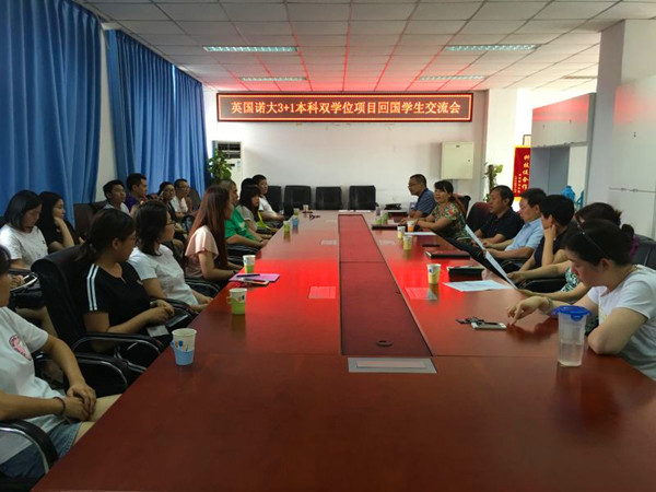 2016年7月5日,英国诺桑比亚大学3+1本科双学位项目回国员工交流会在M88mansion体育401会议室举办,国际合作与交流处长张志勇处长,霍春艳老师;人事处靳珂珂老师;公司党总支书记胡宝贵,副经理赵金芳、赵连静,辅导员温海洋和外事秘书刘笑冰出席了此次会议,会议由M88mansion体育刘芳副经理主持。