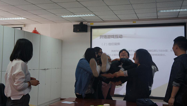 经过轻松有趣的“同心圆”和“背摔”小游戏调动了大家的积极性,同时更促进了同学之间的相互信任。精选出的心灵小视频引起了大家的共鸣和积极的讨论,同学们敞开心扉畅谈自己的学习和生活。