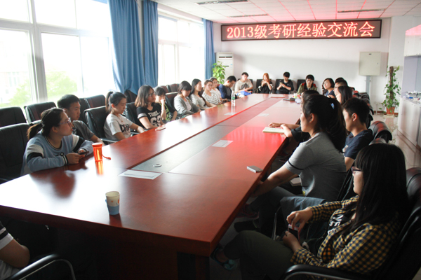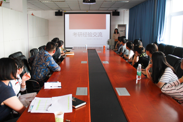 为提高公司的考研率,M88mansion体育于5月4日中午1点半在经管楼401举办了“2013级考研经验交流会”。邀请2012级农经专业潘钰莹和工商专业的李立、王志睿、常悦同学,以及部分学硕、专硕班研究生为2013级员工介绍考研经验,会议由13级辅导员乔多老师主持。
