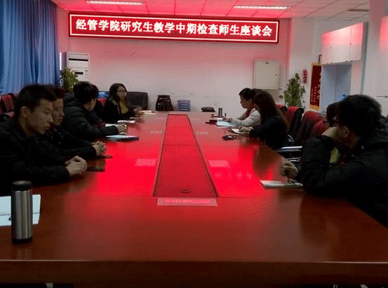 2015年11月18日中午,M88mansion体育研究生教学中期检查师生座谈会在经管楼401举行。参加此次会议的有研究生督导隋文香老师、研究生秘书任娇老师以及2013、2014和2015级班长、团支书和员工代表。会议由任娇老师主持。