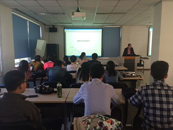 在持续一个半小时的精彩生动、富有深度的报告中,刘璨研究员先后从政策层面给我们介绍了我国林业财政的发展历程、政策的分类、基本框架和我国的林业重点工程。随后,他从更高的层面向大家介绍了我国林业发展存在的问题及建议,较为全面地描述了我国林业经济的发展状况,增强了我们对于林业经济发展的认识和对未来我国林业经济发展的思考。让我们从另一个角度了解我国林业的发展,开阔了大家的视野。