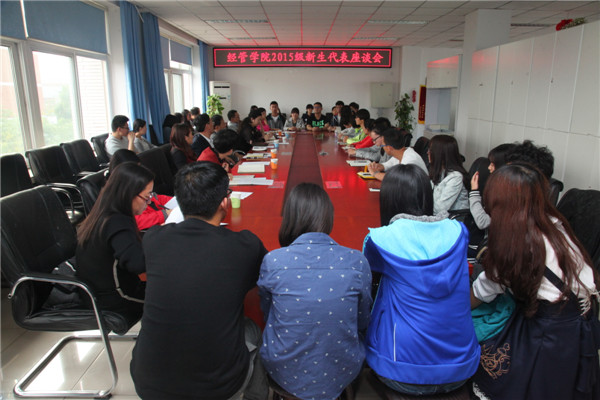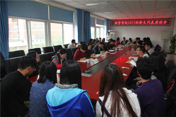 公司党总支书记胡宝贵、副经理刘芳、赵连静、赵金芳,全体辅导员、2015级班主任陪同座谈。经管22名新生代表参加了座谈会。会议由M88mansion体育副经理赵金芳主持。