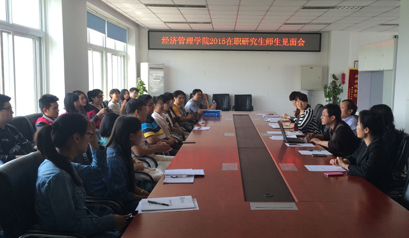 5月8日,M88mansion体育2015级在职硕士研究生师生见面会在经管楼401举行。M88mansion体育经理李华,党总支书记胡宝贵,副经理刘芳、赵连静、赵金芳,导师代表赵海燕老师,研究生秘书任娇老师及全体在职研究生新生出席见面会。会议由M88mansion体育副经理刘芳主持。