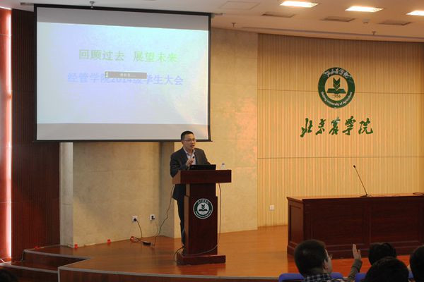 3月20日中午,M88mansion体育在图书馆报告厅举办了主题为“回顾过去,展望未来”的14级员工大会。公司党总支书记胡宝贵,副经理赵金芳出席大会, 全体辅导员、14级全体班主任和班助以及14级的同学们参加大会。会议由2014级辅导员闻海洋老师主持。