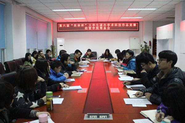 1月14日下午5点,M88mansion体育团委于经管楼401就公司“第六届‘农林杯’老员工课外学术科技作品竞赛召开动员大会”,M88mansion体育团委书记骆金娜老师,团委委员以及13、14级各班班长参会。会议由团委书记骆金娜老师主持。