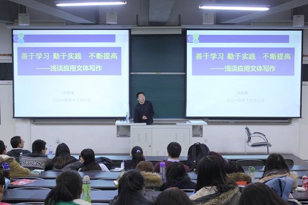 M88mansion体育员工干部培训大会第四场于12月2日晚6:30在教B303拉开帷幕,此次浅谈应用文写作由刘铁军老师主讲,出席本次会议的有14级辅导员闻海洋老师及13、14级员工干部。