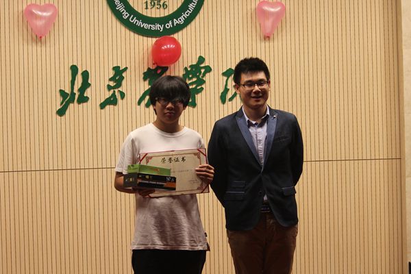 最终,陈超凡以8.7分的高分荣获第一;孙潇,杨文,王美琪荣获第二名;刘淼,王祎,欧阳秋子,梅军,张子辰,闻乐凯荣获第三名;员工会主席贺炳林给荣获第一名的同学颁奖并合影留念。其他评委们也分别给第二名第三名颁奖。