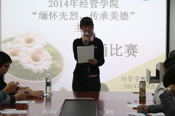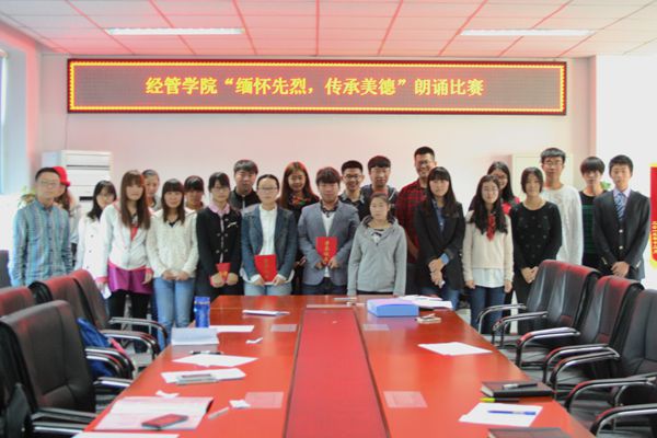 为了缅怀烈士功绩、继承烈士遗志、弘扬烈士精神。10月15日下午,由M88mansion体育团委主办“缅怀先烈,传承美德”朗诵比赛在经管楼401室隆重举行。出席的评委有:M88mansion体育青协主席张璇,新闻信息中心主任徐志峰,员工会自律部部长朱剑锋、团委马思萱、任毅蒙、陈楠。
