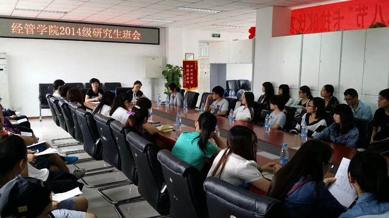 9月12日下午,M88mansion体育在经管楼401召开2014级研究生班会暨院研会2014级招新活动。参加会议的有M88mansion体育研究生辅导员曹暕老师,院研究生会员工干部代表以及M88mansion体育2014级全体研究生新生,会议由院研会干部主持。