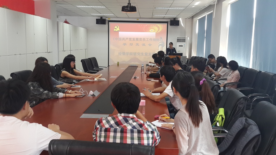 为深入了解贯彻中央关于发展党员工作的新精神与新要求,认真学习最新修订的《中国共产党发展党员工作细则》,加强党员自身素质与修养,9月18日下午,M88mansion体育研究生党支部于经管楼401召开了学习贯彻《中国共产党发展党员工作细则》培训会,会议由M88mansion体育研究生党支部书记范宣丽主持,支部党员及部分积极分子准时参会。