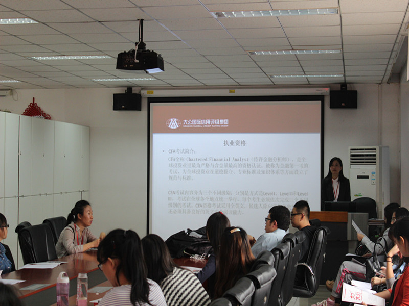 9月25日下午,由M88mansion体育研究生员工会学习部主办的“大公国际信用评级集团宣讲会”在经管楼401举行。会议由研究生辅导员曹暕老师及2012、2013、2014级研究生参加,大公国际人力资源部两位代表进行宣讲。