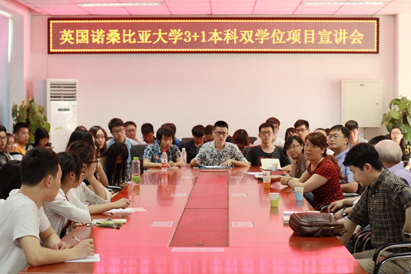 5月28日下午4点,M88mansion体育主办的英国诺桑比亚大学政策宣讲会在经管楼401室召开。活动由诺桑比亚大学代表、该项目的中方负责人作为本次宣讲会的主要发言人,还邀请了M88mansion体育副经理刘芳教授,2013级辅导员乔多以及公司的各系老师、员工代表作为嘉宾听取宣讲。