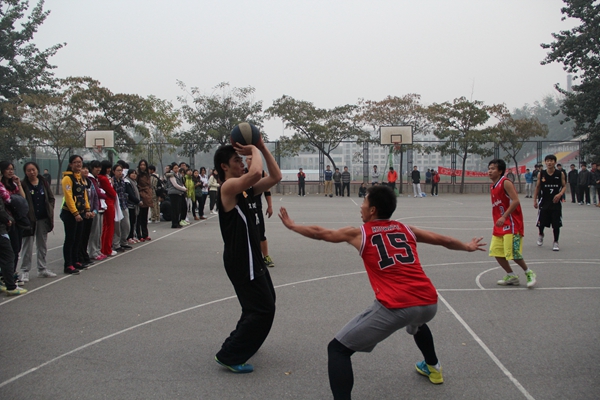 哨声轻响,比赛开始了。经管的球员们活跃在球场上,运球转身、急停过人,动作实用果断,没有一丝拖泥带水。比赛打得难分难解,突然,经管球员一次成功抢断,并用一次快攻战术完美的拿下2分后,整个球赛迎来了高潮。欢呼呐喊声顿时充斥了全场,人群沸腾了。双方球员神情紧张,你来我往、你攻我守,谁也不想轻言放弃。篮球一次次破网而入,比分不断刷新,经管球员用他们熟练地篮球技巧、必胜的坚定信念在球场上创造了一个个精彩的瞬间。