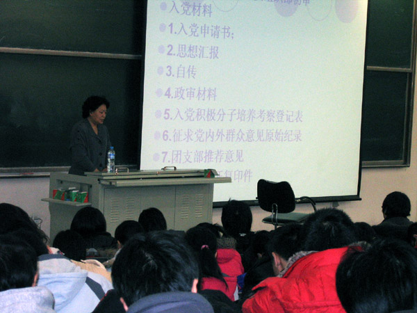 2009年12月12日,一群对党有着向往、追求的经管学子来到B103教室,接受了党课初级班培训。党课初级班培训完全实行开放式办学,宽进严出,主要内容是普及《中国共产党章程》知识,端正入党动机,了解入党程序,使学员对党有一个更深一步的认识。此次党课培训由M88mansion体育王兆洋老师、邬津老师以及马俊云老师、党登峰老师、李相阳老师主讲。