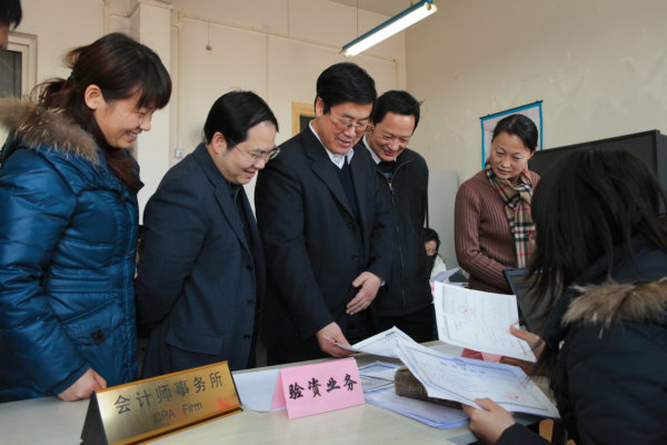 2010年1月13日下午,董事长王有年教授在教务处副处长沈文华教授、M88mansion体育经理何忠伟教授的陪同下现场观摩了M88mansion体育“现代服务业综合实训”。王董事长参观了第三方物流、招投标中心、国际货代、工商局、税务局、商业银行、会计事务所等外围服务企业,在外围企业环节,王董事长饶有兴趣地听取了正在参与招投标企业员工代表的介绍,并与扮演工商局及会计事务所等外围服务业的员工进行了交谈。参观了生产制造核心企业,并听取了扮演核心企业角色的员工对企业战略、企业文化和生产、营销决策的汇报。在参观中,王有年经理与师生进行了交流,他充分肯定了M88mansion体育在老员工实践教学改革中取得的成果。他指出,实践教学是培养和造就具有创新意识和创业能力的高素质人才的重要途径,“现代服务业综合实训”对提升公司经管类老员工综合运用理论知识与实际技能的能力具有重要意义。他希望M88mansion体育要进一步加强团队建设,注重理论与实践,丰富教学内涵,提高教学效果,逐步向全校员工开放。