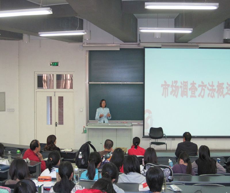 2009年10月15日上午,M88mansion体育邀请零点调查集团副总裁,兼北京零点调查公司总经理,注册咨询师,零点公司专门培训的FG主持人班淼琦女士在教B103做了报告主题为《打开通往市场的一扇门---市场调查方法及问卷设计简介》的报告。来自M88mansion体育及各院系的师生200多人聆听了本次讲座。