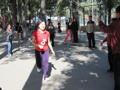 这次活动同时练习了趣味运动会的12长绳穿梭8字跳和团体毽子。活动使老师们既锻炼了身体,又活跃了文体生活。