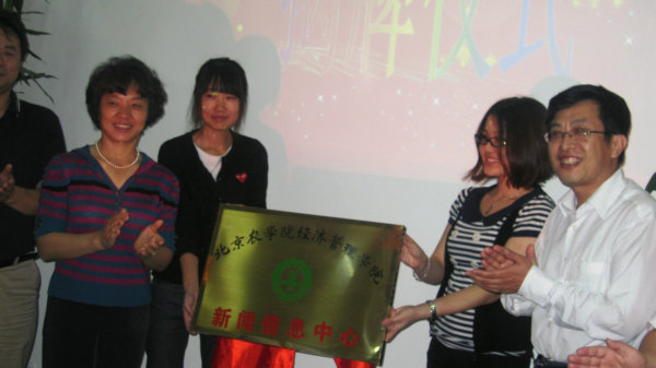 揭牌仪式由中心常务副主任张明欣主持,她首先介绍了新闻信息中心的人员构成、工作宗旨、主要任务,并以短片的形式回顾了信息中心自今年三月份组建以来参与的活动和取得的成效。12:40举行揭牌,标志着MS88官方网站新闻信息中心和校报记者团经管分团正式成立。