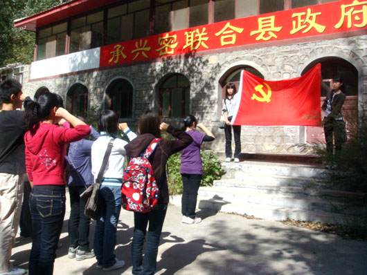 2009年9月23日,M88mansion体育第二党支部的所有党员、推优积极分子在M88mansion体育副经理刘柳老师的带领下来到红色“1+1”互助单位——密云县北庄镇大岭村进行党日宣传活动。庄严的党旗下,第三支部的成员进行了庄重的宣誓。