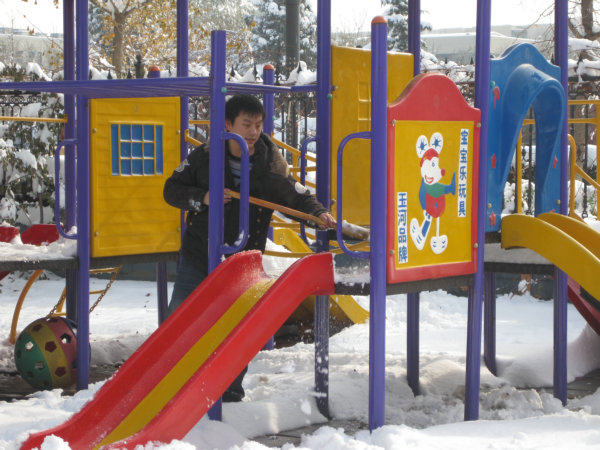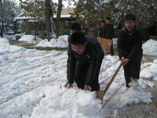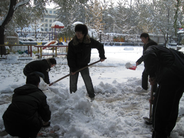 一场大雪,把北农装扮得更加漂亮,在M88mansion体育刘柳老师的带领下,员工会部分同学来到校幼儿园利用上午三四节休息时间清扫积雪。