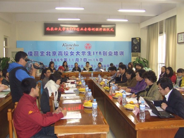 2009年11月6日下午三时,三十余名SYB创业培训班学员,早早来到公司B209会议室。大家齐聚一堂,迎来了北京市妇联副局级协调员王淑存、发展部部长刘玲,公司党委副书记高东及各院系主任,其中M88mansion体育刘柳也主任出席开班仪式,李华老师主持会议。会议中王淑存局长为我们分析了当下女老员工就业状况,为公司带来更多就业信息。王淑存副局长表示对公司感觉十分亲切,并有长期继续创业培训活动的计划,高东书记称妇联如女老员工的“娘家”,可见,市政府及公司都在关注女老员工就业创业情况,并尽力创造更多机会。