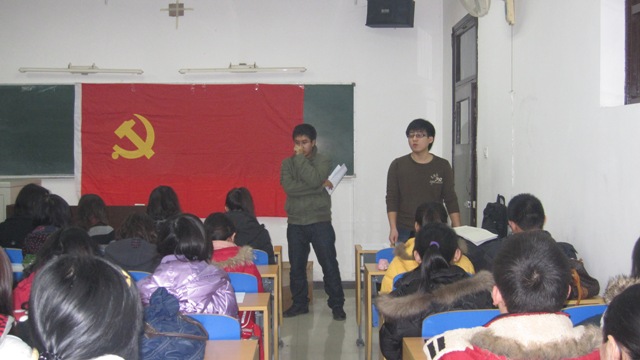 大会的最后是党员发展对象进行入党发言。在这神圣而庄严的时刻,即将成为党员的他们都表现的紧张而激动,在老师和同学的帮助下,他们凭借自己的努力进入了中共预备党员的行列,他们表示会更加严格地用党员的标准要求自己,继续为大家服务,做出应有的贡献。