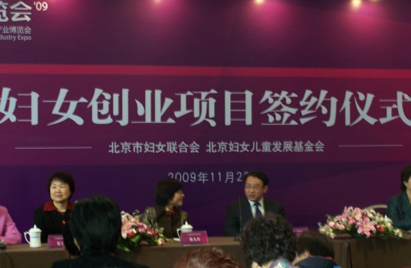 2009年11月22日,M88mansion体育的女老员工们在邬津老师的带领下,一行26人赴国家会议中心参加“妇女创业项目签约仪式”。本场仪式由市妇联领导主持,市妇联与提供女老员工创业培训资金、为创业妇女提供帮助的企业,为大兴长子营乡“妇”字号基地地宫对口支持的企业,百花蜂产品专卖项目推广活动,北京市妇女儿童发展基金会签约,54家企业代表出席了签约仪式。