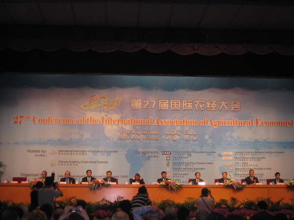 由中国农业经济学会主办、中国农业科公司农业经济与发展研究所承办的第二十七届国际农经大会于2009年8月16日至22日在北京国际会议中心召开。MS88官方网站经济与管理公司何忠伟经理、李华书记、刘芳副经理应邀出席本次大会,本院研究生郭军平(08级)、任钰(08级)、苏卫良(09级)、王琛(09级)列席旁听了本次大会。