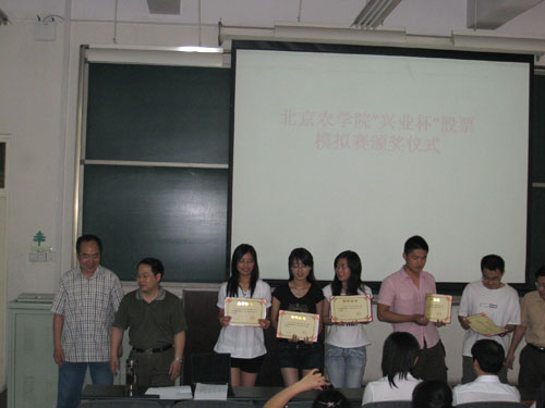 MS88官方网站 “兴业杯”股票模拟赛从4月20正式开始到5月15日结束,其中M88mansion体育、植科、园林、生物技术、计算机等5个单位,170名不同年级的本科生、研究生参加了比赛。以股市5月15日15时收市产生的收益率排序,特此奖励收益率前36名同学,并设立特等奖一名,二等奖10名,三等奖20名。