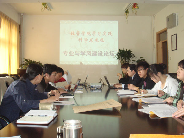 2009年4月17日上午,公司召开学习实践科学发展观“专业与学风建设”论坛。会议由公司党总支书记李华主持,经理何忠伟、副经理刘芳、刘柳、各教研室主任与各党支部书记、辅导员等参加了此次会议。