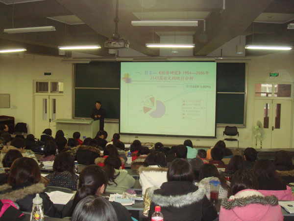 2008年12月10日,经管系邀请国家级教学名师清华大学M88mansion体育特级教授李子奈为师生讲授了《计量经济学的方法论基础》。