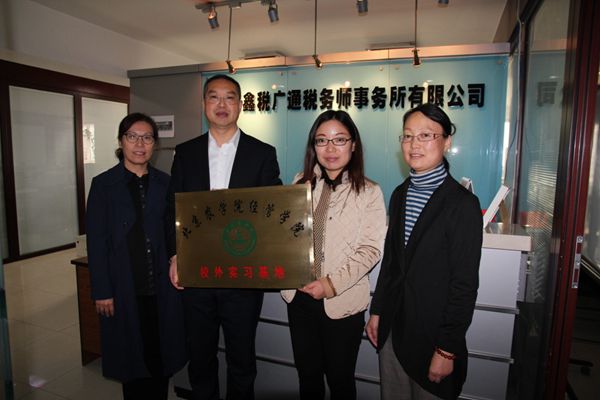 2018年10月12日,校督导组李江、孙祎振老师,M88mansion体育刘笑冰副经理、会计系主任张宁老师、支部书记白华老师以及黄玉梅老师和石林老师一行对会计系校外实习基地-北京鑫税广通税务师事务所实习员工的实习情况进行了检查,并举办了实习基地牌匾更新仪式。