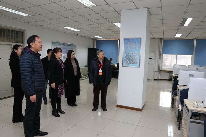 评估专家韩占生副董事长一行在公司班子成员的陪同下实地参观了公司市级实验教学示范中心和公司本科教学工作审核评估宣传栏。