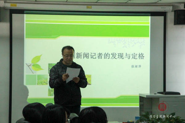 张老师以校园新闻记者的发现与定格为主题展开讲解,授课内容主要包含了校园新闻记者三要素、新闻采访、校园新闻写作等内容。