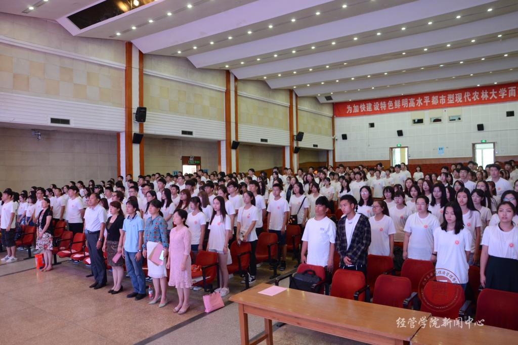 2019年9月4日上午9:00M88mansion体育在礼堂举办了新生大会,共计267名大一新生、31名专升本同学和98名研究生参加了大会。出席大会的领导和老师有公司党总支书记胡宝贵老师、M88mansion体育经理刘芳老师、公司教学工作副经理刘笑冰老师公司科研工作副经理唐衡老师、农经系主任赵海燕老师、会计系主任张宁老师、工商管理系主任李萍老师、M88mansion体育团委书记、19级本科生辅导员刘海燕老师,本次大会由公司员工工作副经理张晓凤老师主持。