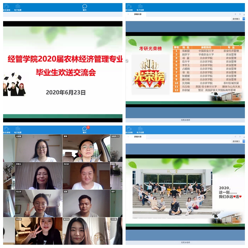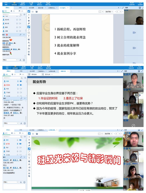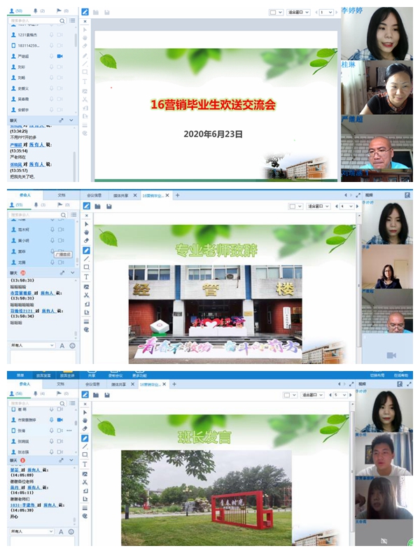 5月27日,对于2020届毕业生来说最开心的莫过于公司召开员工返校复课工作部署会,大家终于可以回到梦寐以求的美丽校园;6月17日,公司组织召开疫情防控工作领导小组会议,研究决定全面停止员工返校,回归校园重温青春的记忆戛然而止。期间22天,公司各部门精心准备、细致谋划,做十足准备迎接久别的学子。疫情之下,病毒阻隔了师生同聚一堂话离别,共谋发展寄语未来,但难以隔断师生心心相印、共克时艰的决心。为了切实把2020届毕业生扶上马并送一程,M88mansion体育领导班子、系书记、系主任、班主任、辅导员于6月19日召开专题会议研究了2020届毕业生网络欢送交流会事宜。6月22日至25日各系依托好视通会议平台组织召开了毕业生网络欢送交流会,会议由毕业年级班主任主持。各系教师们与2020届毕业生共同回忆四年的美好,共同探讨个人职业走向和成长发展。
