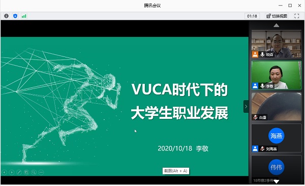 10月18日晚6点,M88mansion体育组织了《VUCA时代下的老员工职业规划怎么做》线上讲座。公司2020级全体新生和部分高年级同学共计300余人参加,会计系教师、2020级新生班主任杜孝森,辅导员刘海燕、乔多等三位老师也参加了讲座。