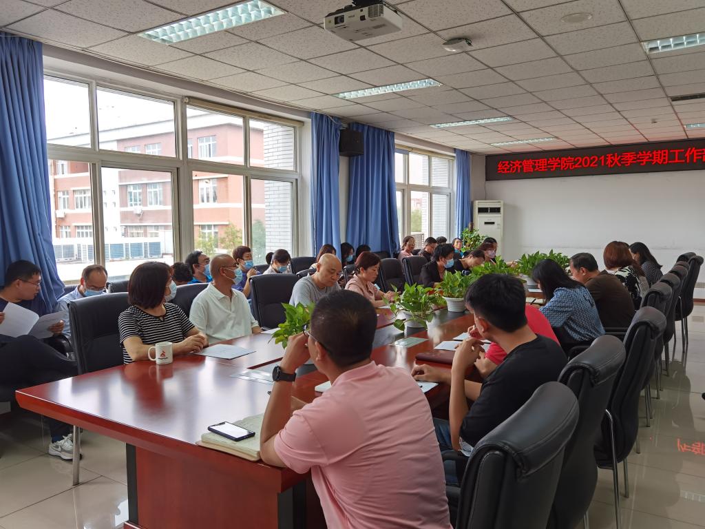 2021年9月5日上午,M88mansion体育全体教职工在经管楼401会议室召开2021年秋季学期工作部署会,会议由M88mansion体育经理刘芳主持, 公司领导及全体教职工参加。会前公司领导做了精心的准备,会上公司领导分别讲话,通报相关工作情况,部署秋季学期相关工作任务。