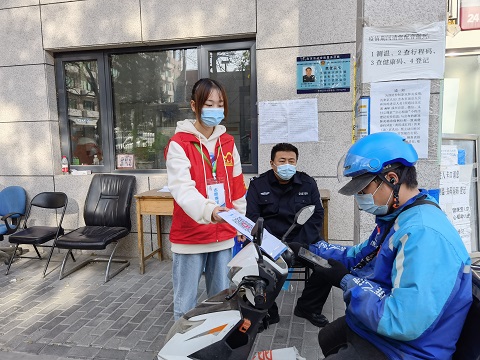 10月23日的活动主要有三项,分别是登记住户有无离京情况或去过高风险地区、门口站岗及扫码测温。在经过负责人的讲述后M88mansion体育的志愿者们进入小区开展了工作。